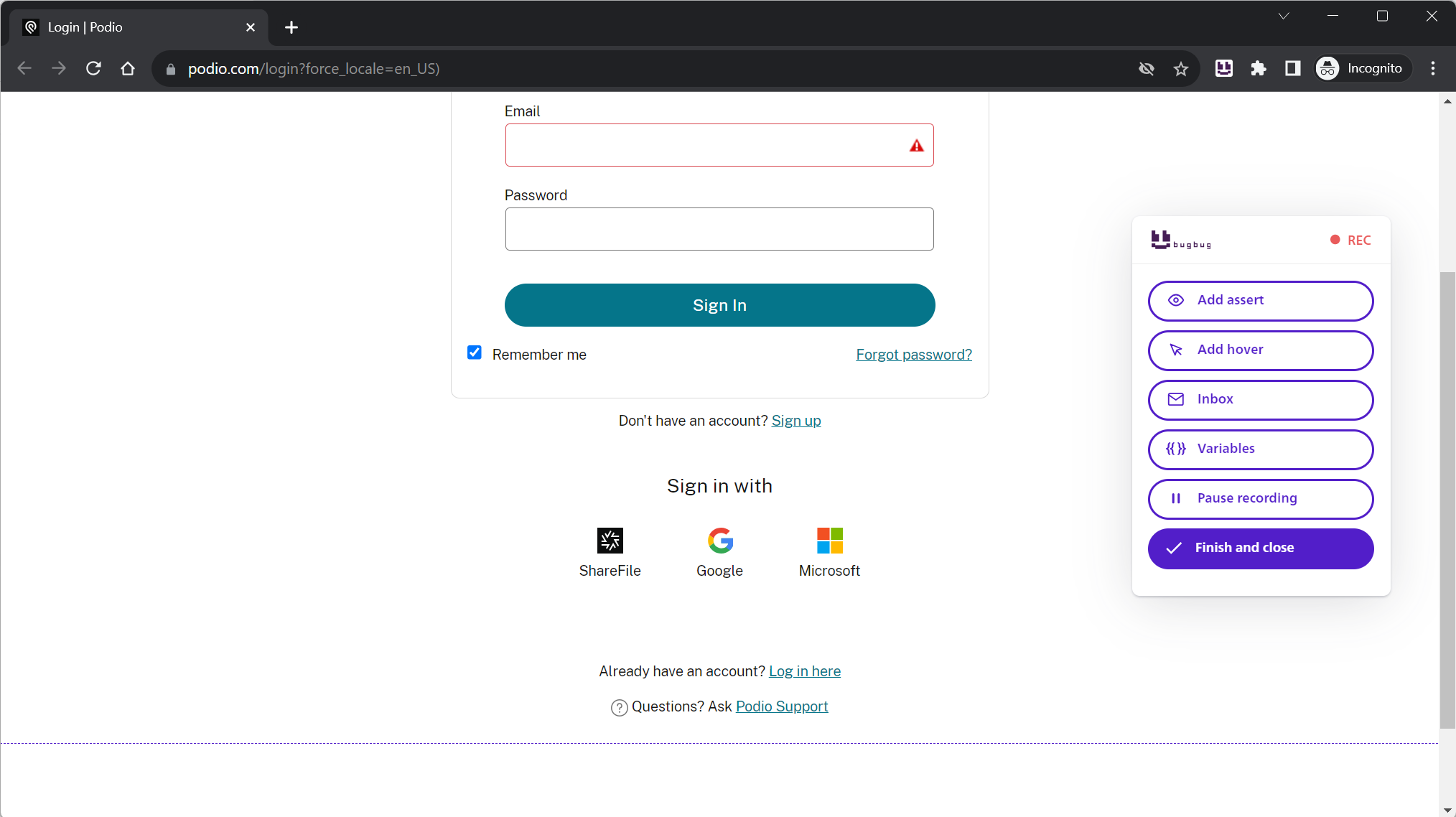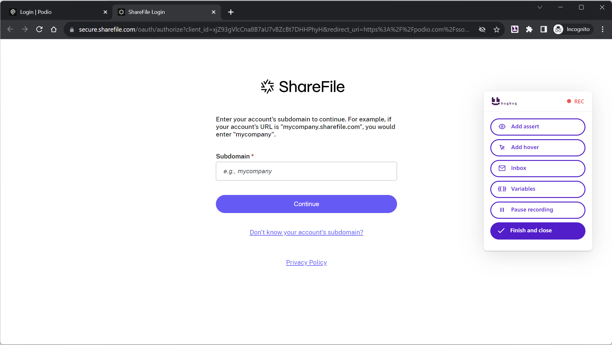 While recording the same step/flow in BugBug: